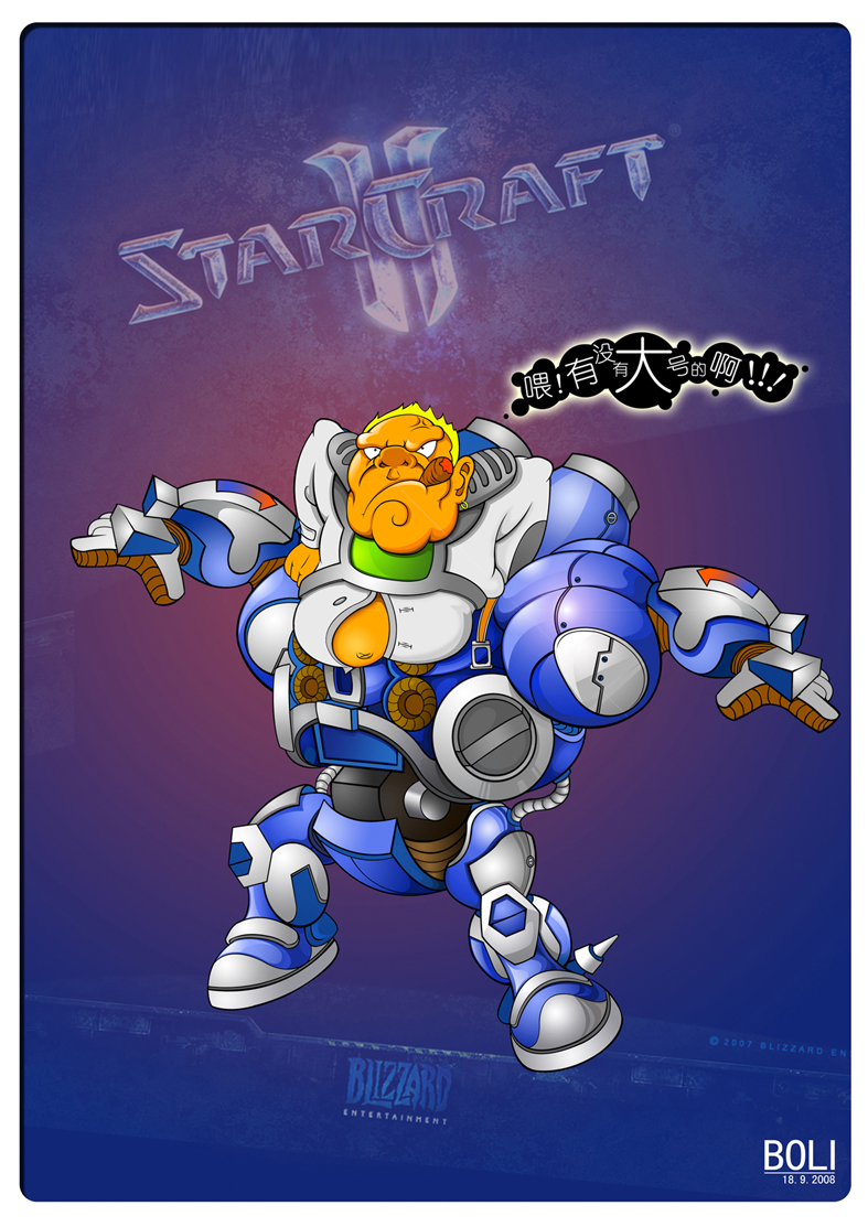 一个因发福而被卡在装甲里的人族枪兵