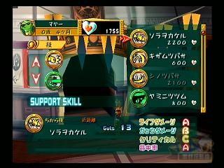 黄色的技能是ちから系,绿色是かしこさ系,青色是辅助技能。右下角是技能的评价。ライフダメージ:生命伤害;ガッシダメージ:Guts伤害;クリテイカル:会心一击率;命中率:命中率。有些技能要先习得特定的技能才能学。