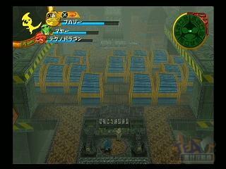 开始对搞笑二人组的战斗十分简单,跟乔丘的战斗是必败的不用努力了。答应了戴茜和布鲁斯潜入工厂后就可以开始冒险。迷宫中的机关都比较简单,控制怪物都能搞定。来到图上显示的位置要拉下开关使箱子停下来才能通过。之后大门要按左右左的顺序踩下开关是机装箱吊起来,踩下开关时箱子下会冒出怪物,记得及时转过身来。