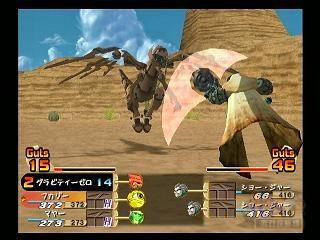 沙漠里的地形虽然很复杂但是没有什么机关,小心沙会下陷的沙子(冒烟的)和龙卷风。尢娜塔念了一块石碑上面的トチカ文字后往回走就能发现新的出路。前方的斗技场要把里边的敌人全灭后才能继续前进。