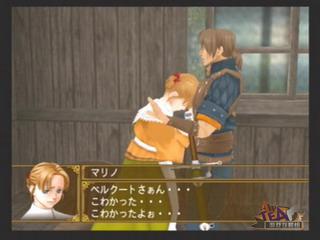 | 来到圣地的契之泉,主人公和リオン使用手上的黎明之纹章和黄昏之纹章启动了机关,泉水退去露出了一扇门。原来ルナス之所以被称为圣地,是因为第一代女王就是带着太阳之纹章在这里出现的,也就是说,这扇门应该是通往アストワル山脉的太阳之纹章遗迹…… |