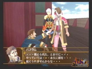 通过王子军的努力及城中人民的支援,成功突破ドラート的城门,キルデリク狠心下令烧城,バフラム忍不住要反对他的做法,而キルデリク竟诬蔑他私通反贼导致战败……这时,连一直对ギゼル忠心耿耿的ディルバ都看不过眼了,バフラム为了证明自己的清白,决定自己打头阵,冲破ラフトフリート的水上包围网,让ゴドウィン大军逃走。 王子进城后,受到人民百姓的热烈欢迎。这时战争尚未结束,军师吩咐ドラート的人民先躲在家里,王子军则继续歼灭留在城中的キルデリク等余党。主人公等人来到要塞前,发现敌军已经登上バフラム的舰队准备逃走。于是,主人公立刻骑上竜馬,与ダハーカ会师歼灭バフラム的舰队。 バフラム的舰队突破不了,バフラム便直接登上ダハーカ欲取ラージャ的首级。这时主人公刚好赶到ダハーカ,打败バフラム之后,バフラム和ラージャ这对师徒也终于分出了胜负,バフラム虽然死了但是也成功让ゴドウィン大军逃脱。ラージャ含泪送走了她这个不肖的徒弟…… |
