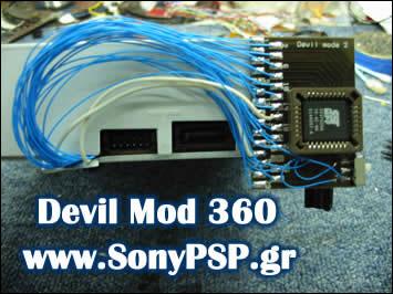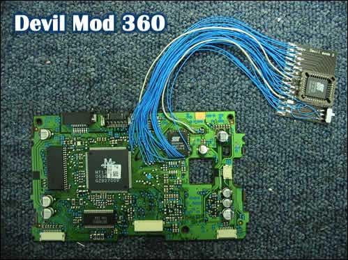 DevilMod360 是对XBOX360的高密度光盘的一个双重的固件数据片,包括“日本东芝公司-韩国三星公司”和“日立-LG”。DevilMod360 是一个可升级的装置,包括1 x SST39SF020A 256 Kb 闪光Rom。黑客并没有公布更详细的信息和实际运行画面。