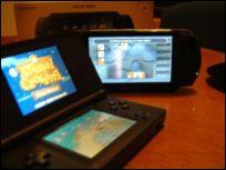 值得注意的是PSP和DS Lite的对比,PSP由于光驱的存在还是比DSL大一些,虽然DS Lite的透反屏幕已经比DS显示效果好很多,和PSP相比在色彩还原以及可视角度依旧有一定差距。当然PSP是定位与便携娱乐设备这个时尚领域的,相对注重影音性能是理所当然的。