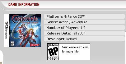 在KONAMI的官方网站上公布了恶魔城发售日为2007年秋季,这就意味着我们还得等一年的时间才能玩到该款恶魔城.