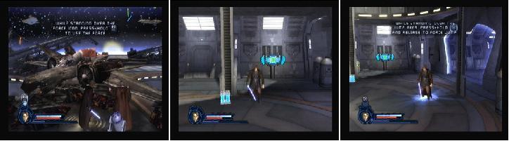 系统操作介绍:□键:轻攻击△键:重攻击(连击敌人多次后,会被挑起)○键:突刺×键:跳跃(配合L3为躲闪)攻击时配合□键、△键和○键会使出不同技巧。L1键:防御R1键:用FORCE把敌人举起(按着不放,不会掉下来,放手敌人会被扔出,有攻击判定。扔出后可追加一次攻击。)L2键:把剑仍