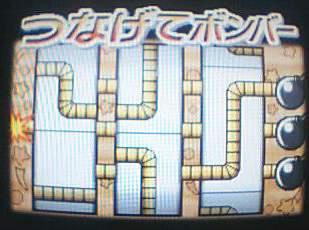 说明:玩发类似***,点击下屏的按钮停止相对应上屏的转动,连接处一条路线引爆炸弹,连续引爆的话分数倍增,没有难度可言