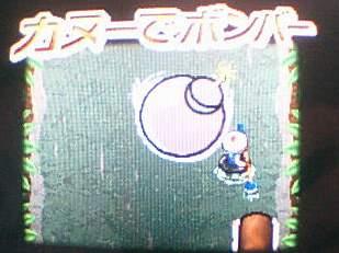 然后在洞穴(C)与胖子炸弹人比赛踢炸弹,个人认为这次乱撞一通的效果倒是不错,成功以后获得方块卡