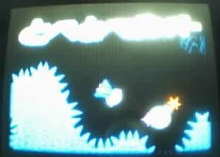 说明:用触摸笔控制炸弹人飞行方向,打爆炸弹,每个炸弹需要打三次才会爆炸,爆炸后弹片会击中炸弹人耽误大量时间,建议观察上屏地图,在下屏还没有出现炸弹的时候将其击破,比较容易躲避弹片,另外碰到墙也会掉下来