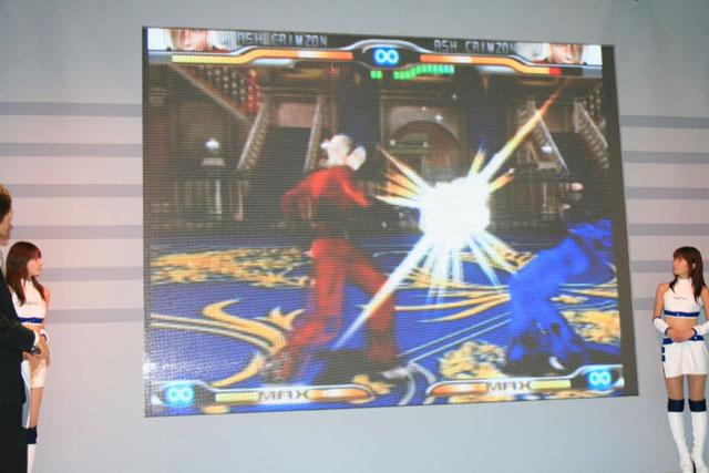 首先公开的是在PS2平台推出的“《格斗之王 极限冲击》(KOF MAXIMUM IMPACT)系列”的街机板——《格斗之王 极限冲击 规则"A"》(KOF MAXIMUM IMPACT REGULATION"A")。本作除了继承系列作品3D化的游戏特征之外,还将增加《格斗之王X》以后登场的新角色Ash。据悉,本作标题中的“A”除了表示街机(Arcade)之外,还表示Ash将会登场,标题LOGO中的绿色也就是Ash操纵的火焰的颜色。本作预定于2007年推出。