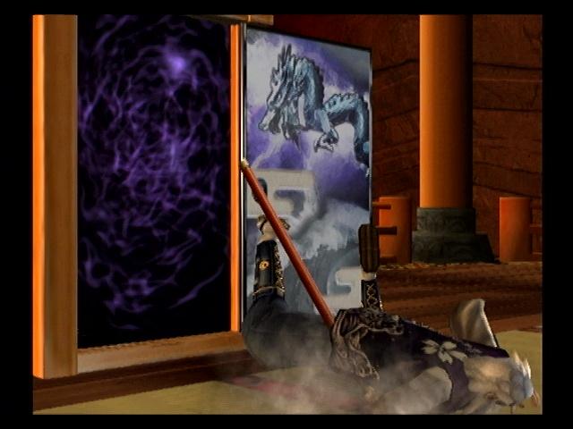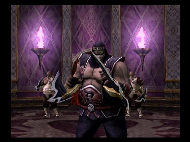 这里稀里糊涂地出来了一个东洋武士老大,他的确够稀里糊涂的,居然能被门槛绊倒,不过是里却是不容置疑,上来先用尽所有的GOD REEL和神之手磨他血,然后就是箱子招呼,不过记得留几个,他的招数比较简单,但都很厉害,一般对他的攻击不要超过三次,不然会无硬直剑舞反击,如果他防御的话自然冲上前去破防连打,当它用分身的时候立刻用箱子拽没,反复几次即可胜利