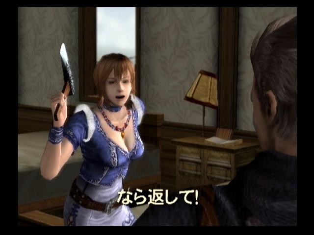 将入口处两名敌人干掉后,开启左边的机关打开地板,开到两个SM女王正在SM一个美女,立刻跳下去营救,成功后从美女赠与的箱子中学会新的GOD REEL,上来后看准位置向前跑,快速穿过机关通道,将从天台上跳下的二人击毙后得到两把钥匙,这里推荐先干掉拿狼牙棒的,不仅因为它攻击力高,还因为干掉他又能用棒子的△攻击憋屈人了……下楼后用△攻击憋屈死两个美女后调查墙上的海报,海报让主人公想起了他曾经为救女主角丢掉手臂的事情……