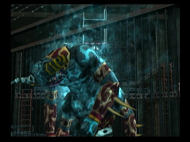 这个场景有两个平台,每到一个平台都会放下笼子困住玩家,直到消灭全部敌人为止,因为这里场地比较小,所以不推荐用箱子砸,每个平台有两拨敌人,第一个平台第一波第一很容易,飞腿+灭火轻松搞定,第二波的敌人被打倒后会变成大恶魔,比以往恶魔都要强,拉远距离还会发激光,推荐近身战,紧急回避也用侧闪,将大恶魔打倒后捡起他的三叉仗来到下一个平台,这次的笼子有电所以不能靠近,不过利用这一优势加上三叉仗的△攻击瞬间搞定第一拨敌人,第二拨敌人的攻击力很高,而且无应制,不过用武器△攻击或者吹飞攻击轻松搞定