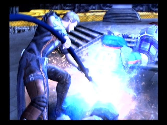 本章的BOSS战,但实力很弱,上来先用GOD REEL将其打散变形,然后立刻用神之手再次打散,然后一直埋身战,此BOSS挨打几乎没有硬直,不过很好对付,打两拳侧闪一次,再两拳在侧闪,如此循环几乎可以不费血打倒他,唯一需要注意的是当他把两条胳臂都抬起来的时候说明要全身放电,则需要后退紧急回避,如果是埋身战的话他的招数几乎都击不中玩家,关键是不要贪多两拳一闪轻松解决,打倒他后他还向回到椅子上充电,玩家自然好心好意帮他充电,不过貌似方法错了-_-|||