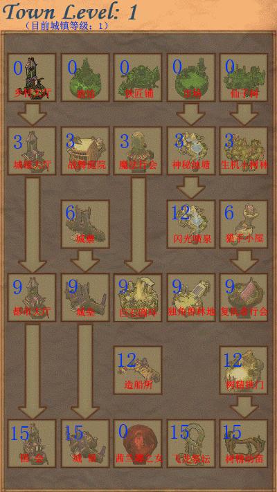 第一周:酒馆(Tavern)、仙子树(Faerie Trees)、一级魔法行会(Magic Guild Level 1)、城镇大厅(Town Hall)、战舞庭院(Battledance Terrace)、猎手小屋(Hunters Cabins)、市场(Marketplace)