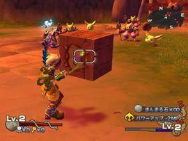 本作在游戏过程中,掉落到树木和岩石上都会有不同的“MONO”事件发生,传达出惊恐等级系统的详细内容。当玩家用鞭子抓住地面上的木制箱子后,可向远处密集的怪物抛出木箱,受到惊吓的怪物会全部起身。箱子撞到地面上,周围的怪物头上就会出现数字。在数字消失前怪物是无法防御的。这就是惊恐等级系统。攻击惊恐状态下的怪物道具和金币会陆续掉落,在怪物的HP还尚存和惊恐数字依然存在的情况下,道具会陆续掉出。