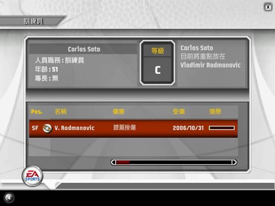 在NBA07中,EA把很多选项又重新组织编排,界面也略有不同.我们看一下"球队经理服务台".
