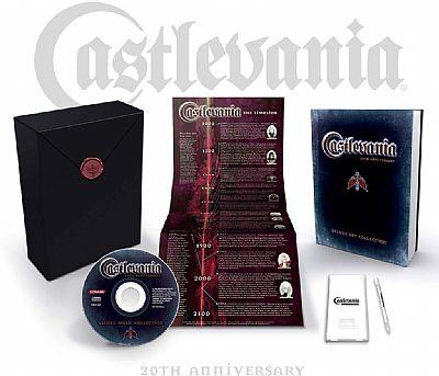 该预约特典采用了全黑色外包装盒,以红色蜡制印章封口,整体外观弥漫着中世纪的古朴风格以及恶魔城的诡异气氛。其中的重头戏乃是一本48页全彩精美画册,其中收录了“《恶魔城》系列”20年来历代作品的精美插画。此外,还包括一张收录系列经典原声音乐的CD和一张记录着《恶魔城》世界历代重要事件及登场主人公简介的大幅海报,这几样东西可以说是所有喜欢《恶魔城》系列的玩家都梦寐以求的。然而这还不算完,该预约特典还将同时赠送一根特制的可伸缩的带有《恶魔城》标志的NDS触控笔和一个《恶魔城》主题NDS卡带收藏盒。