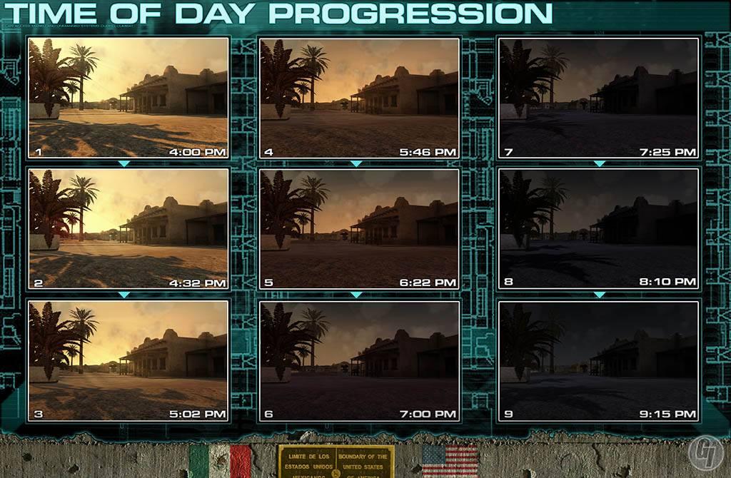 《幽灵行动 AW2》采用了前作的引擎,在图像质量上延续了高水准,从本次公布的相关画面来看,本作将会引入时间变化系统。前作中每一个关卡的气候,时间段都是一样的,但是在本作中这一点将会得到改进。玩家可以在游戏中明确感受到时间的变化,随着时间的流逝,地面的影子将逐渐拉长,场景亮度也会慢慢下降,在入夜之后也会有比较明显的光影效果变化。这样的光影变化是否会对游戏进程产生变化目前还不得而知。