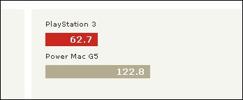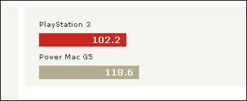 另外,以上两套测试平台还有很多不能保持统一的地方,PS3的Cell运行频率高达3.2GHz,而Power Mac G5的Cell只有1.6G,运算速度明显有很大区别,同时,内存容量也难以满足评测统一要求,Power Mac G5的内存高达1280MB而PS3只配置了256MB,那么处理器运算频率差距重要还是内存容量重要呢,我们实在很难平衡,毕竟PS3只是一台家用式游戏机。