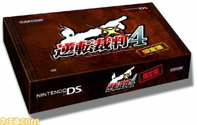 对于逆转系列的FANS来说,逆转裁判4的限定版可谓是极其华丽,其中除了《逆转裁判4》的游戏卡带外,还包括一份记录系列重要时间的《逆转裁判事典》,一张收录逆转系列珍贵影像和动画的《逆转动画》DVD。另外,第一批买到这个限定版的玩家,还能获得印有游戏LOGO的超酷头带式耳机。