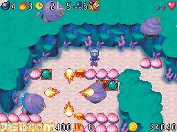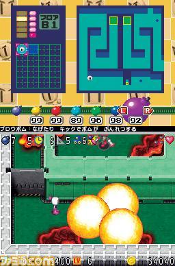 NDS版的《炸弹人物语》游戏类型为ARPG,以富有变化的5个行星做为舞台,游戏最大的乐趣在于和敌人激烈的战斗和各种各样的解迷。同时,利用NDS的无线通讯机能和Wi-Fi连接的“炸弹大乱斗”也将收录到游戏中,最大支持8人同时对战。而且,本作与已经发售了的《Touch!炸弹人》也可以进行对战。