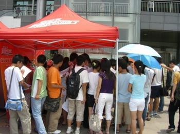 首先看到的是支持正版万人签名区的火爆场面,下课的同学们迅速聚集在签名台周围,争抢着签名、填写调查问卷和注册网元网会员,然后心满意足的领取Xbook(多功能记事本)。