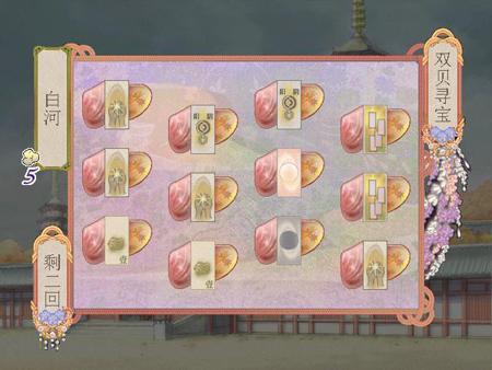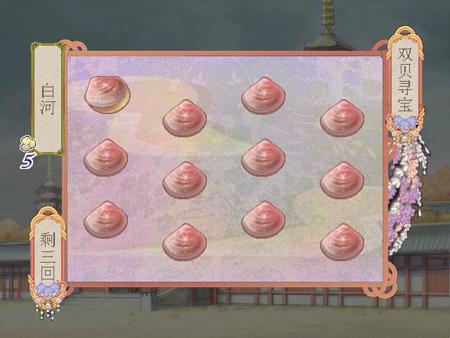 玩家每次在小游戏中取乐的同时,也会带着心仪的八叶前行,八叶不变场景会变,不会每次都正好遇到相同属性的场景且正巧是“双贝寻宝”的地点。所以,在“双贝寻宝”中,除了考验玩家记忆力,寻找以最少次数赢取最多道具的方法也是关键。每次在“双 贝寻宝”前先存档,进入小游戏后,3位角色最少有3次掀贝壳的机会。