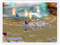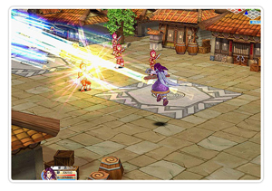 ◆『灵气弹』─ 纳天地灵气为己用 琴瑚的招式『灵气之玉』,可以将自身的灵气为引,使其聚集在战场的上空形成灵气弹,且灵气弹的威力可以随着灵气的逐渐累积而增强,外型也将愈来愈大,甚至笼罩整个战场的上空! 灵气弹一旦聚集时,此时只要再使用『灵气系』的招式,便能将灵气弹中的能量完全吸收,瞬间造成极具毁灭性的攻击威力。 灵气弹不仅可以增强攻击伤害,更可使用在辅助技能、甚至回复技能的强化上头;随着不同的『灵气系』技能,灵气弹的强化作用也将随着改变, 这就是『灵气弹』特殊的战斗特性。 |