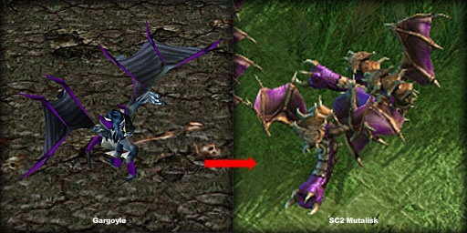 雇佣于不死族的Gargoyles(石像鬼),给Mutalisk的进化提供了一些创造性的观点。最有视觉效果的特点是厚重的盔甲薄膜支持的翅膀和钝脊骨延伸出来在翅膀末端的一些爪子。尽管Mutalisk的总重量因为这些物理上的改变显著的增加,Kerrigan再一次确信这些变异是必需的,它们能在Swarm里灌输一种恐惧和魔鬼的外表
