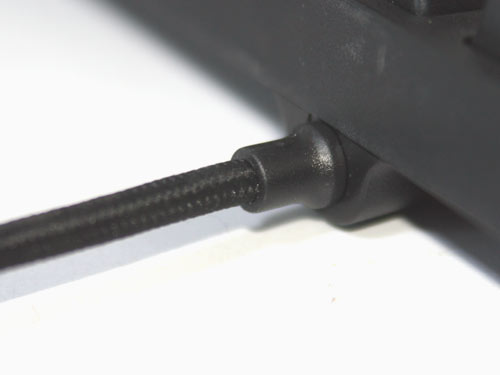 7G采用了比6G2更加细致的尼龙屏蔽线材,镀金的插头充分的保证了信号传输的稳定性。由于加入了USB HUB及音频输出接口,所以7G的线材显得非常粗壮。由于键盘增加了USB HUB功能,所以为了保证键盘的使用,键盘的接口采用了PS2接口,并随机赠送一个PS2转USB的接头,细小的设计也体现了7G设计者的良苦用心。