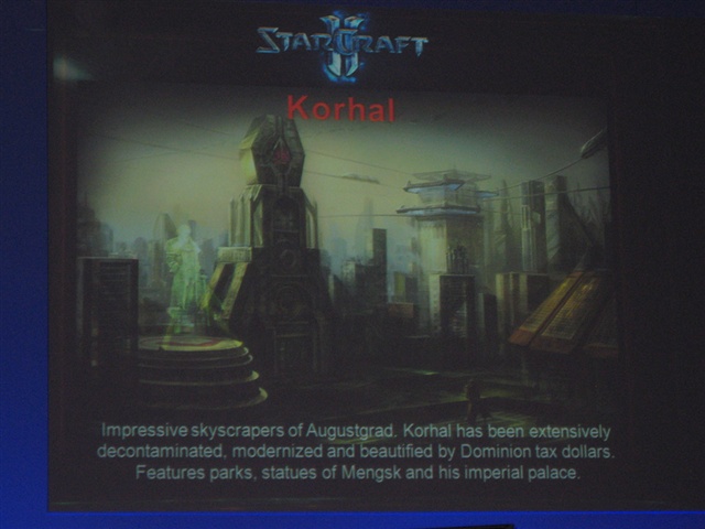 Augustgrad,Korhal的首府,令人惊叹不已的摩天大楼世界。凭借着帝国的纳税者们的巨额投入,Korhal已着实好好地被彻底净化、现代化及美化了一般。主题公园,Mengsk皇帝的雕塑和他的皇家宫殿。