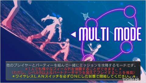 联机乃本作的精华所在,而联机模式也是本试玩版的重头。在这个模式中,你可以和其他玩家一起组成4人小队进行冒险,当然一个人也可以玩哦。由于试玩版的记录在正式版是可以继承的,你不必担心你的辛苦会白费,放心的去练级吧。(试玩版中角色的等级最高可以达到20级,职业等级可以提升到5级)