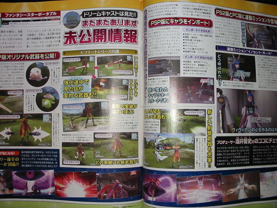 在近期得到的情报中得知,本作中加入了很多原创的武器,而且很多经典武器也会复活,比如以世嘉经典主机Dreamcast为原型的导具。另外与其他机种上游戏的联动现在也明确了。不但可以将PS2版及PC版中的人物下载到PSP里,而且还有专门的联动任务。