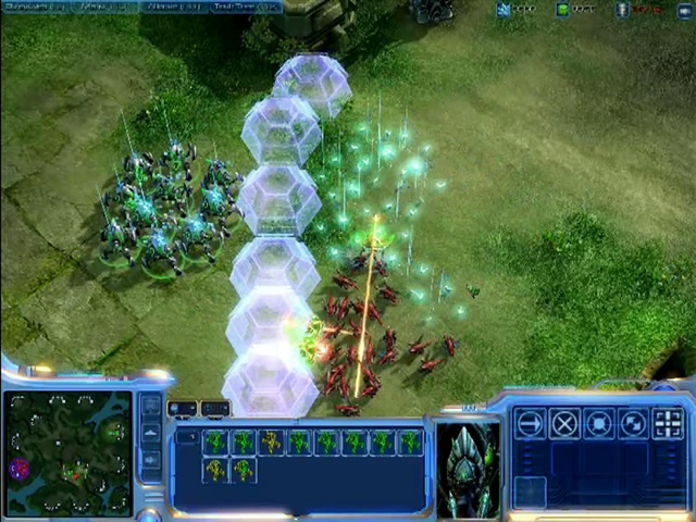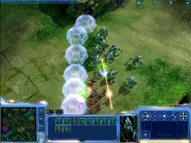当然,我们也不能忽略了神族。与虫族的菌毯十分相似的是,魔法似乎是神族取胜的关键。神族单位少,但更强大。神族似乎在战斗之前会在每处都仔细规划资源的使用。它们同样拥有游戏早期像否决者这样的魔法单位。这个单位有力场的技能,可以让你制造你自己的主基地。让否决者和追踪者合作应该是个不错的战术,显然这需要周密的计划。反重力场是神族另一个十分有用的技能,可以让你控制敌人。