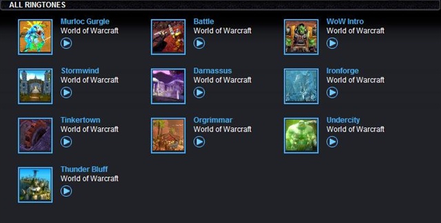 为你的手机添加魔兽世界的壁纸和铃声,现在在现实生活中,无论你到哪里,都可以带上艾泽拉斯的印记。这是我们一项新的服务,让你为你的手机下载你喜欢的有关暴雪游戏的内容。目前已经有超过50件作品等待你来选择,包括魔兽世界主城主题的铃声,特色鲜明的鱼人声音,各种角色、派系的壁纸等等。访问新的铃声和壁纸页面获得更多信息——你还会发现更多有关星际争霸和暗黑破坏者的内容。