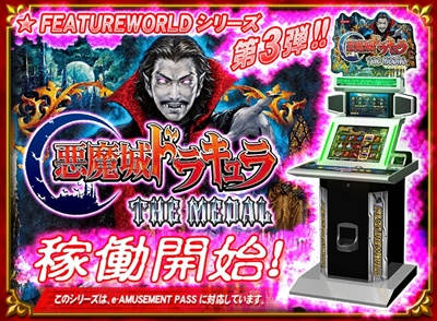 KONAMI公司宣布,街机新作《恶魔城THEMEDAL(悪魔城ドラキュラTHEMEDAL)》即日起在日本市场开始运营。 《恶魔城THEMEDAL》是一款类似于***玩法的娱乐机器,是对应在线服务e-AMUSEMENT的FEATUREWORLD系列游戏的第三作。《恶魔城T