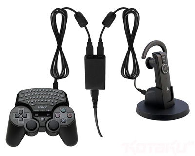 这个电源不仅仅可以用来给PS3手柄充电,而且还能同时给蓝牙耳机、无线键盘或是另外一件什么周边充电,只要是带USB接口的随便你充。