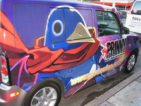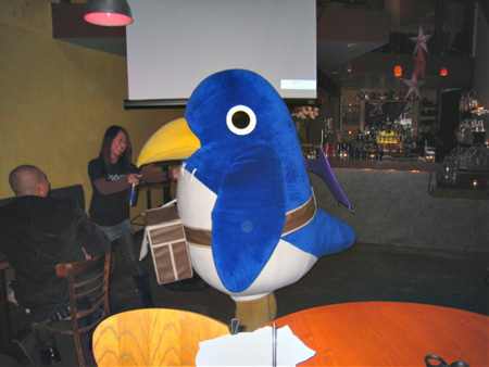 昨晚NIS官方为庆祝PSP游戏《普利尼:俺当主角行吗?(Prinny:CanIReallyBetheHero?)》登陆北美,在旧金山举办了一场别开生面的活动,现场出现了一只喝的醉熏熏的巨大蓝色企鹅和一辆相当性感的游戏宣传车。 下面有一些从活动现场拍回来的照片,大家可以在