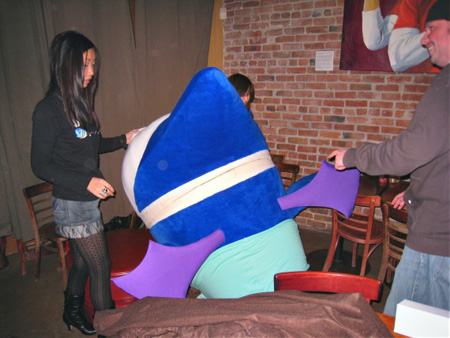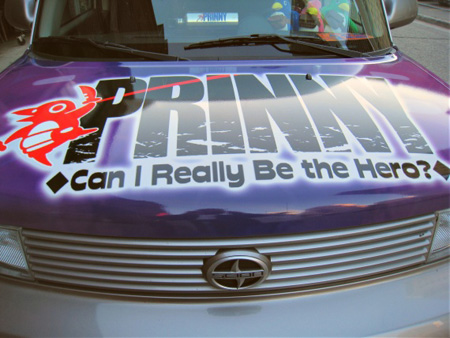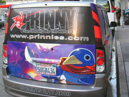 昨晚NIS官方为庆祝PSP游戏《普利尼:俺当主角行吗?(Prinny:CanIReallyBetheHero?)》登陆北美,在旧金山举办了一场别开生面的活动,现场出现了一只喝的醉熏熏的巨大蓝色企鹅和一辆相当性感的游戏宣传车。 下面有一些从活动现场拍回来的照片,大家可以在