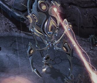 第一张是人族对战神族,神族用曲棱镜召唤出了大量单位到战场,配合空中部队对人族进行打击,人族扛住这一波还是有点困难。人族航母放出的小飞机还留有飞行轨迹,不过看起来有些生硬曲棱镜形成的矩阵内召唤出了大量单位末日执政官在攻击人族防空塔,造型有变之前的造型和攻击动画