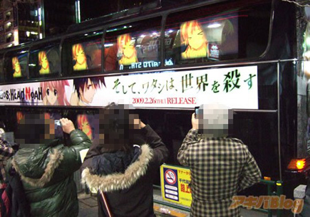 预定于2009年2月26日推出的《混沌思绪 诺亚(カオスヘッド ノア)》,是一款改编自热门小说的PC游戏的X360移植版。为了宣传这款游戏,官方改装了一辆奔驰豪华大巴开到秋叶原大肆宣传,直到……警察出现。