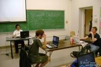 很多游戏媒体网站试图采访他,他承认独自站在演讲厅上有点害怕。来听课的人大大超乎预计的150人,演讲厅座位满员,还有不少人站着在听。我们的Nimue课后总结道:“我认为第一场讲座很不错,群众纷纷给予肯定,认为气氛很轻松,我们课上都在谈论星际争霸或是在玩这个游戏。授课很生动,有时也会包含一些抽象概念。