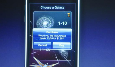 当然,作为iPhone用户,今后也可以直接在游戏内购买新的关卡或追加下载内容。各种应用软件也支持"In App Purchase",但该功能目前仅限付费软件使用。