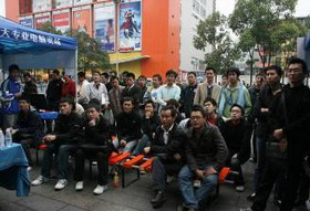 广州的湿热的天气稍微给赛事增添了紧张气氛,接着我们来到了上海分赛区。只见网吧内外到处是此次比赛的海报宣传图,给赛事营造了足够的气氛。选手们也专心的进行着比赛,谋划着每一个步骤,争取最后的胜利。