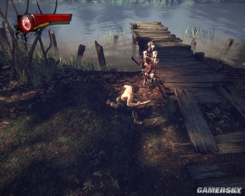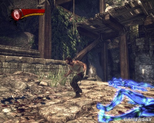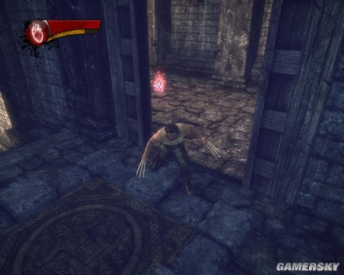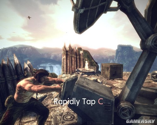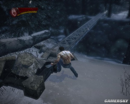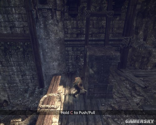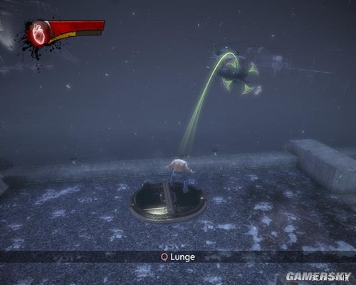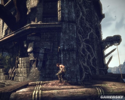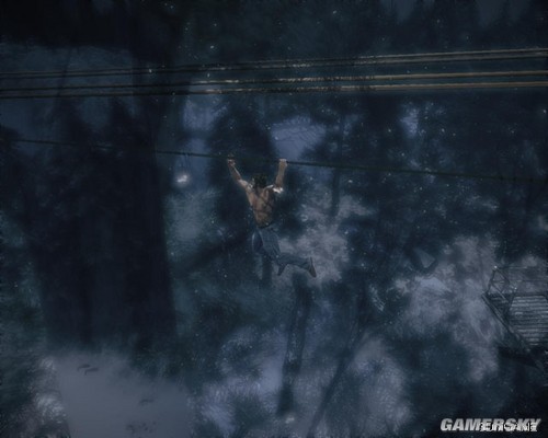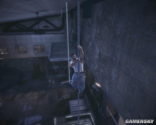 清完场,按CG提示的楼梯上去。上面会有隐兵,用野兽感知轻松解决(按1)。然后跳上绳索攀过去。