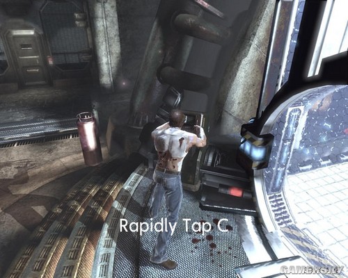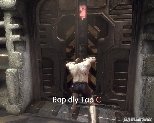 走到牢房前,进一段CG,完后出现敌人,杀光,然后破坏牢房门的控制器。狂按C吧