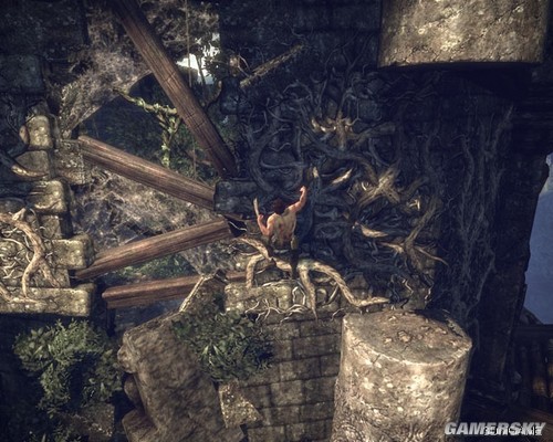 从藤蔓上爬过去,从这里要一层层的打上去了。不知为什么我想起了儿时收看的神龙斗士,小救星…………