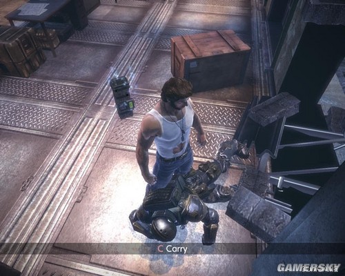 这些都完成后,去踹开旁边的控制室的门,进去对控制器按C,把集装箱放下来。