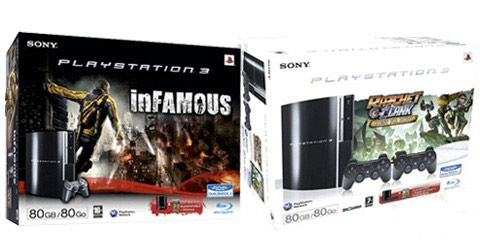 一家西班牙网站放出了两张新版PS3套装的照片,一张是《恶名昭彰(inFamous)》同捆版,另一张是《瑞奇与叮当 未来:战利品大冒险(Ratchet & Clank: Quest For Booty)》同捆版。